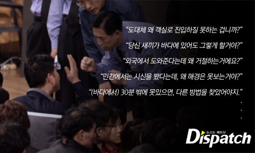 가족들은 오열했다. 차가운 바다 속, 3일째 갇혀 있을 딸 생각에 가슴이 미어졌다. 그들은 "지금까지 무엇을 했냐"고 따져 물었다. 해경은 "최선을 다하고 있다"는 답변만 반복했다. 그러나 그 누구도 해경의 말을 믿지 않았다.