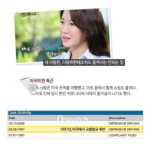 실제로 이지아는 자유롭게 미국을 돌아다녔다. '디스패치'는 미국 법원의 사건 사고 기록을 조회했다. 1997년 8월, 이지아가 애리조나에서 교통법규를 위반한 사실을 알게 됐다.