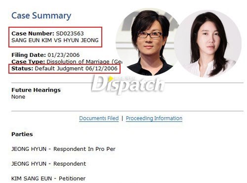 D : '디스패치'가 입수한 미국 LA고등법원(Superior Court) 이혼소송 요약본에 따르면, 두 사람은 2006년 6월 12일 법적으로 남남이 됐다.
