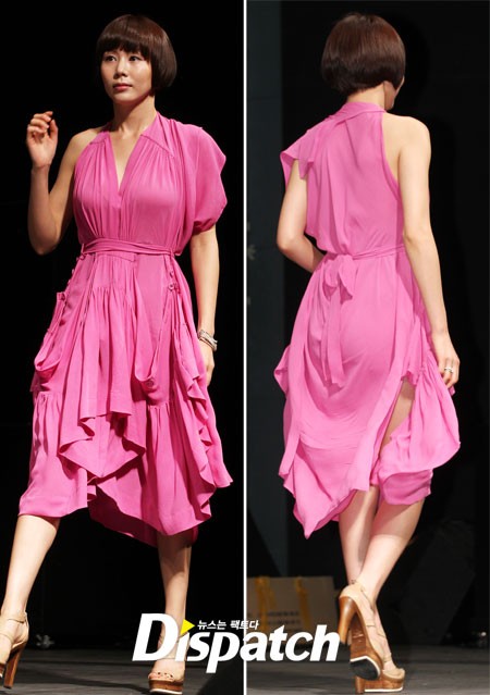 드레스 하의 부분 전체에 장식된 치렁치렁한 러플은 산만함 그 자체였다. 양옆 트임은 정체를 파악하기 힘들 정도로 섹시하지도 세련되지도 않았다. 결국 몸매 맞지 않는 헐렁한 사이즈 때문에 몸매는 실종되고 핑크가 주는 여성스러움도 전혀 살리지 못했다. 얼굴선에 맞춰 자른 보브컷은 시크함 보다는 마치 가발을 쓴 것처럼 어색해 보였다.