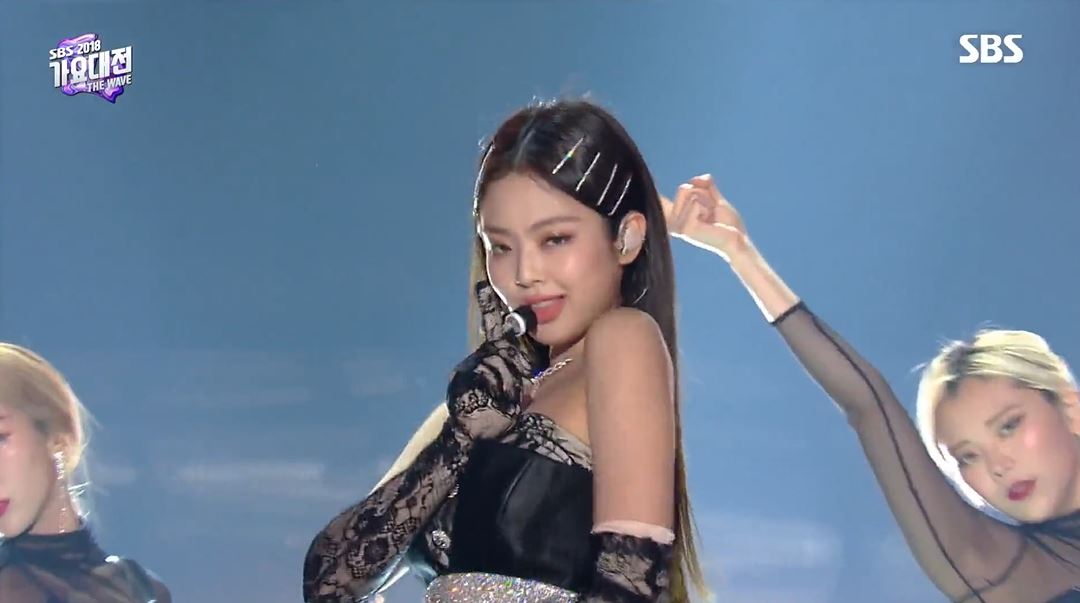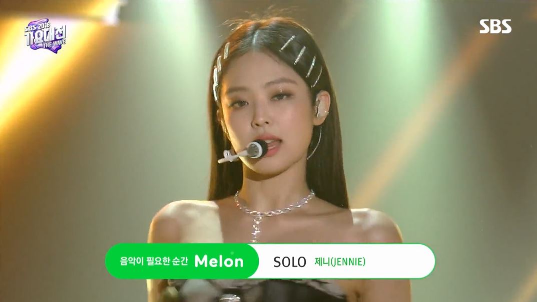 제니는 25일 서울 고척스카이돔에서 열린 '2018 SBS 가요대전'에 참석했습니다. 블랙핑크 무대에 앞서, 혼자서 '솔로' 무대를 선보였습니다.