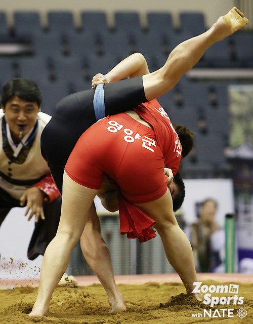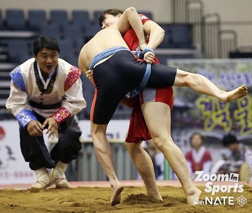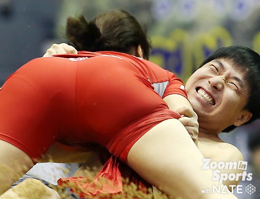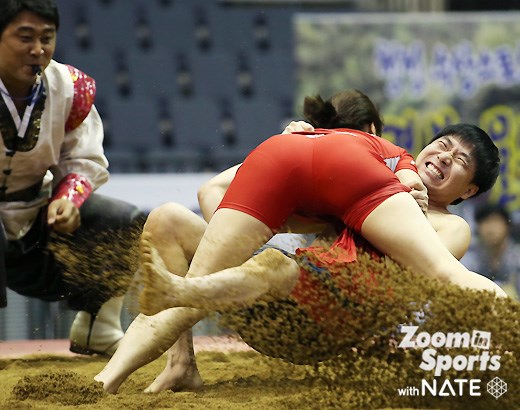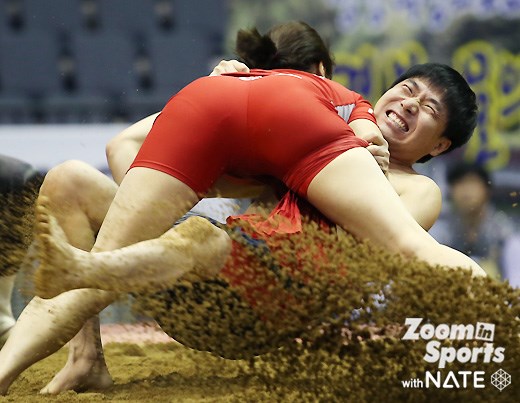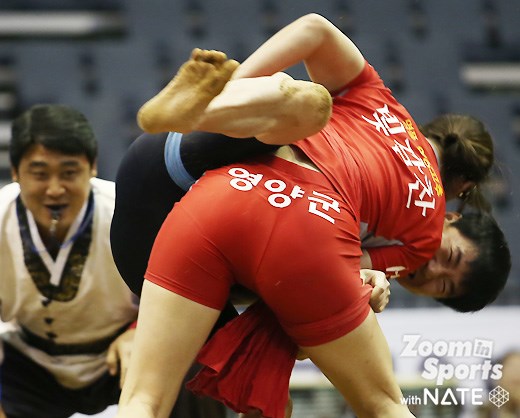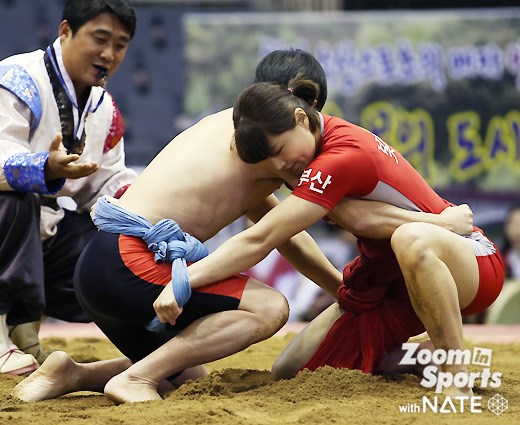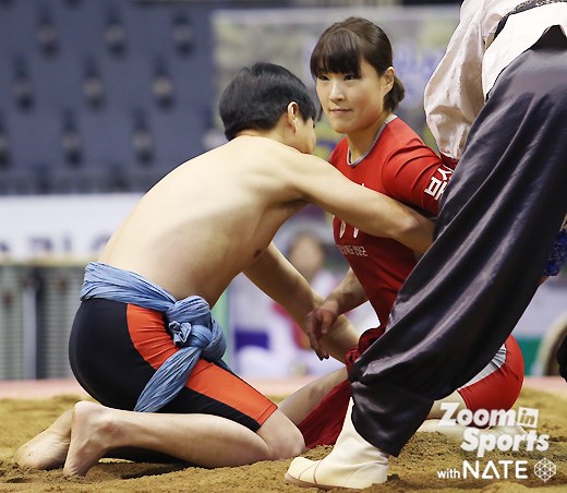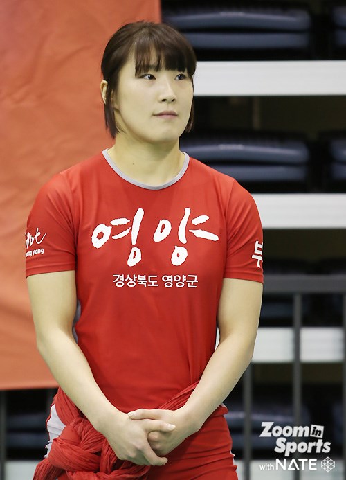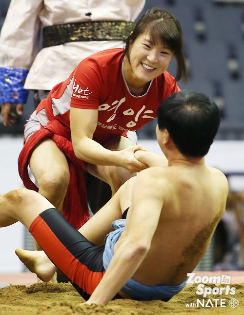 [임수정은 이 대회 국화급(70kg 이하) 우승을 차지하며 여자씨름 1인자임을 재확인시켰다.]