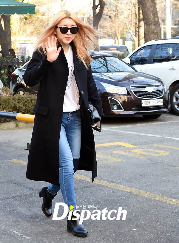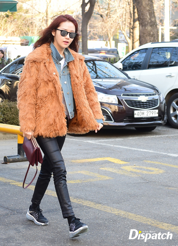 현아는 반전입니다. 이날은 '패왕색' 아닌 귀요미입니다. 연한 컬러의 청재킷에 블랙 스키니진을 받쳤습니다. 여기에 미니 크로스백으로 마무리.