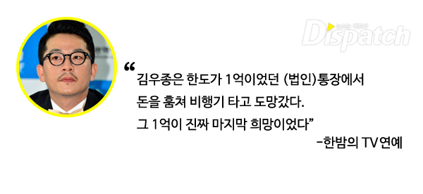 김우종은 법적인 잘못이 분명하다. 법인 통장에서 1억을 빼내 해외로 도주한 건 사실이다. 자신의 주식을 담보로 빌린 돈이라 해도 횡령의 책임을 면하기 힘들다.