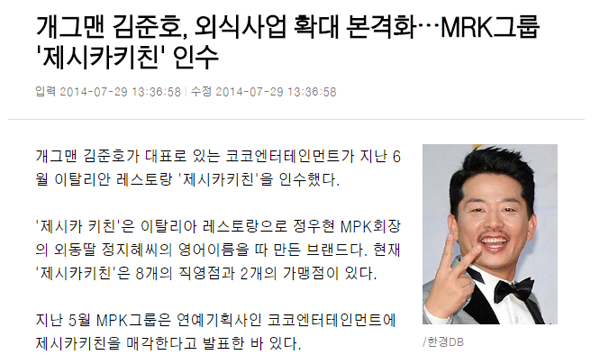 게다가 김준호는 외식사업은 관심 밖의 분야라고 못박았다. 하지만 그는 '코코엔터' CCO로 활동하면서 '고매육가'라는 개인 프렌차이즈 사업을 벌이기도 했다.