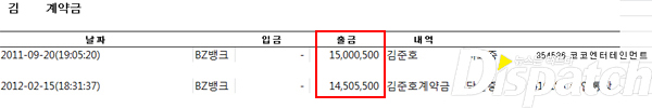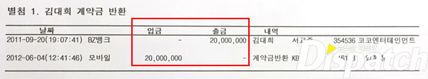 계약금 부분도 미스테리다. 지난 2011년 9월, 김준호와 김대희는 '코코엔터'로부터 각각 계약금 3,000만 원과 2,000만원을 받았다.