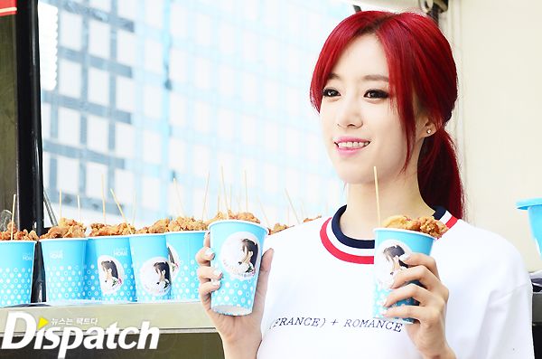 엘시는 16일 오전 11시 서울 상암동 MBC 신사옥 앞에서 팬서비스를 열었다. 팬들을 위해 치킨 역조공에 나선 것.