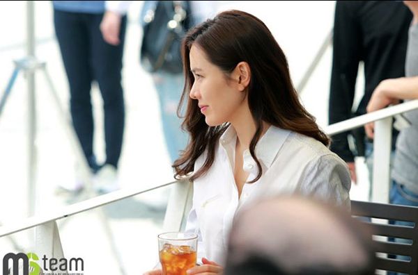 엠에스팀 엔터테인먼트는 6일 저녁 공식 페이스북에 손예진의 촬영 B컷을 올렸다. 화창한 날씨, 카페에 앉아 휴식을 즐기고 있는 모습이였다.