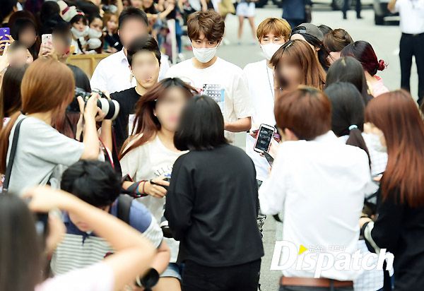 이날 인피니트를 보기 위해 수많은 팬들이 인산인해를 이뤘다. 인피니트는 입장부터 팬들에게 둘러싸여 선물 공세를 받았다.