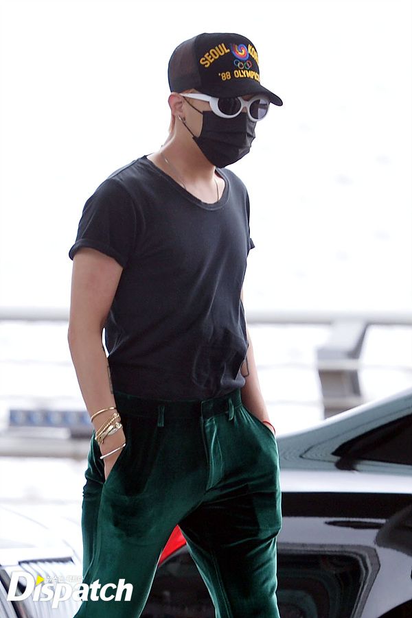 [Dispatch=황수연기자] '패셔니스타' 지드래곤의 공항패션에는 공식이 있다. 무더위에도 포기할 수 없는 모자, 그리고 마스크다.