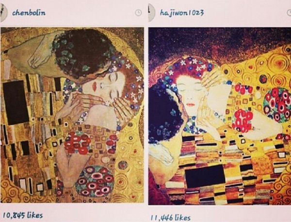 ▷ HOW : 비슷한 시기, 유사한 사진을 게재함. 고양이를 안고 윙크를 하는 사진, 구스타프 클림트의 '키스' 그림, 우주 사진 등 닮은꼴 이미지를 올림.
