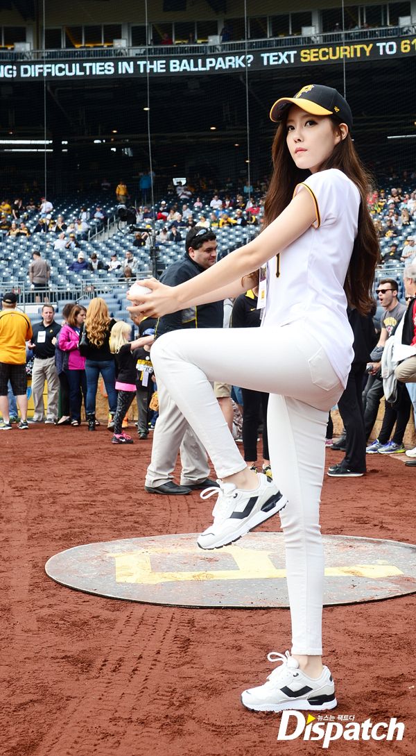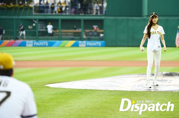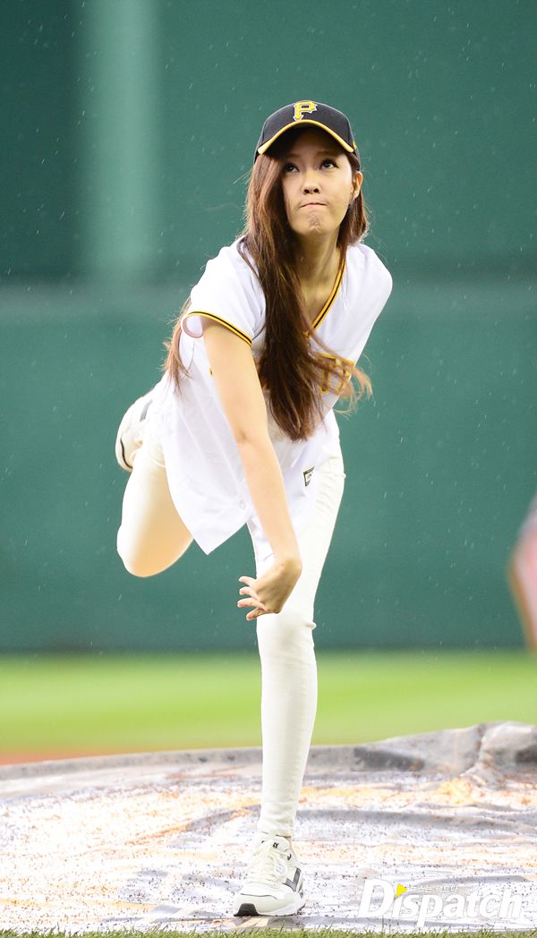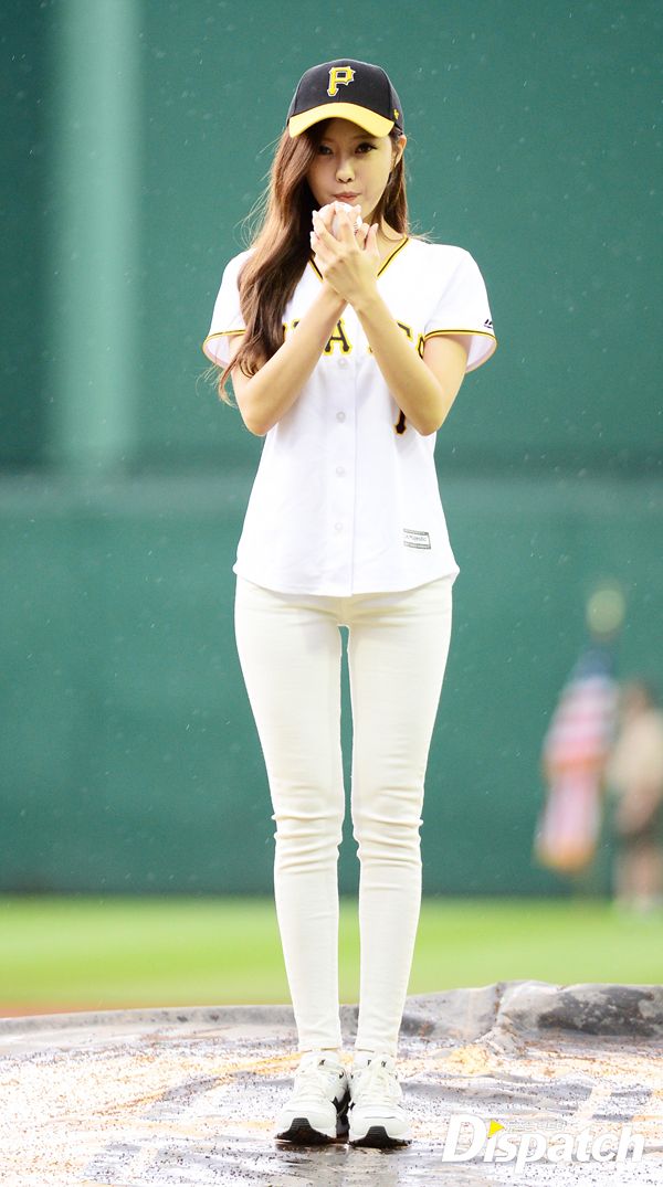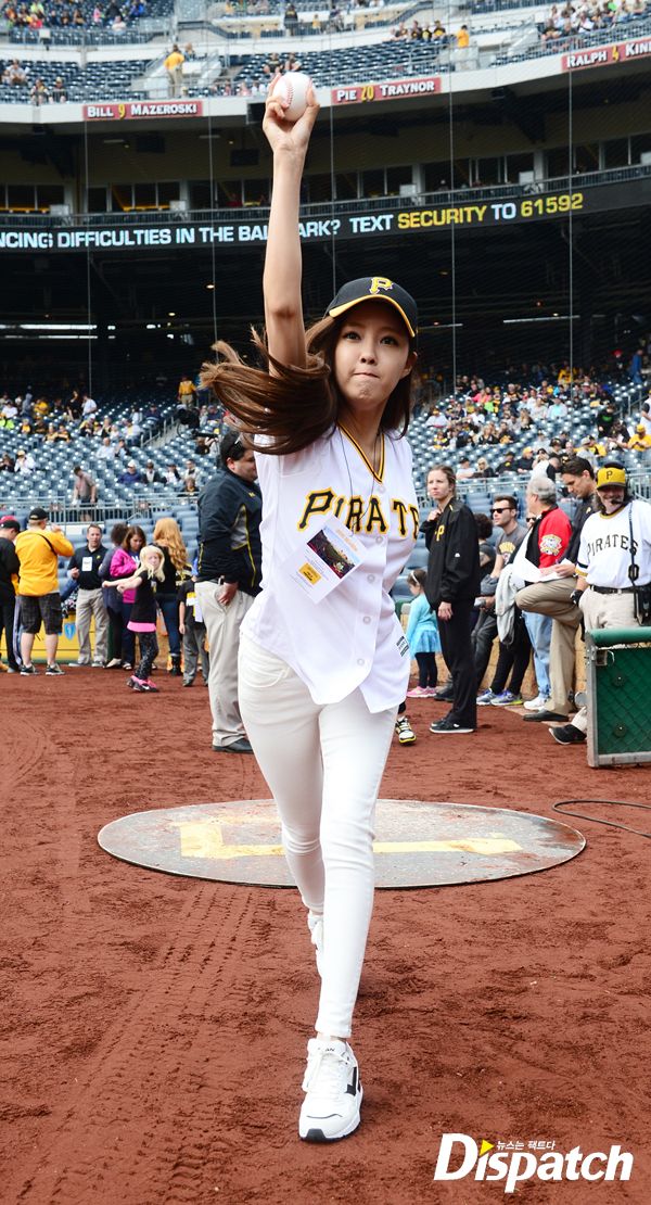 드디어 날이 밝았습니다. 효민이 PNC파크 마운드에 오르는 날입니다. 저 긴장한 표정, '티아라' 데뷔 무대만큼 떨리는 순간입니다.