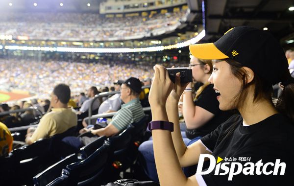 그녀가 자리를 잡았습니다. 네, 바로 효민입니다. 먼저 캠코더로 위풍당당 3루수를 찍습니다. 줌으로 당겨 볼까요?