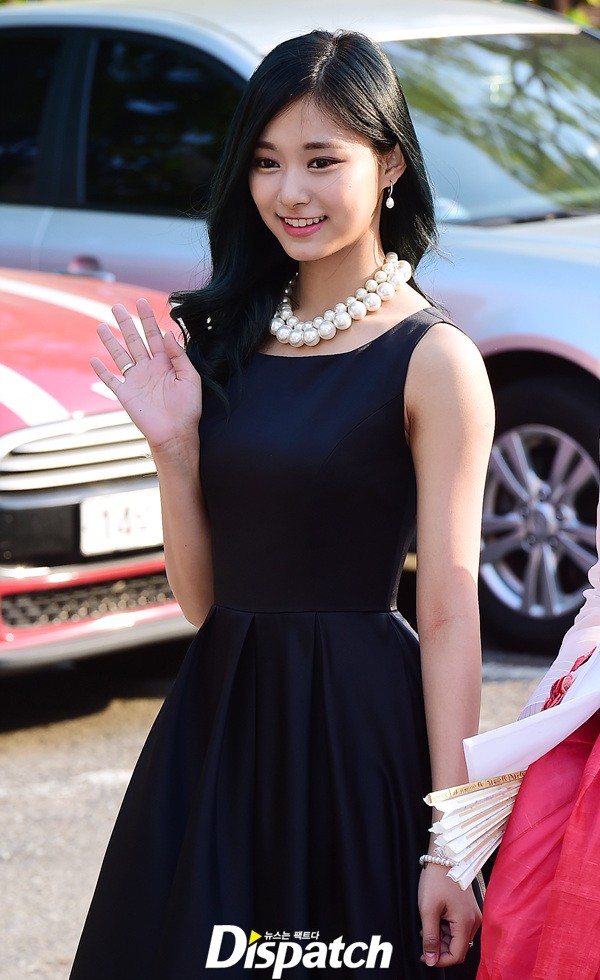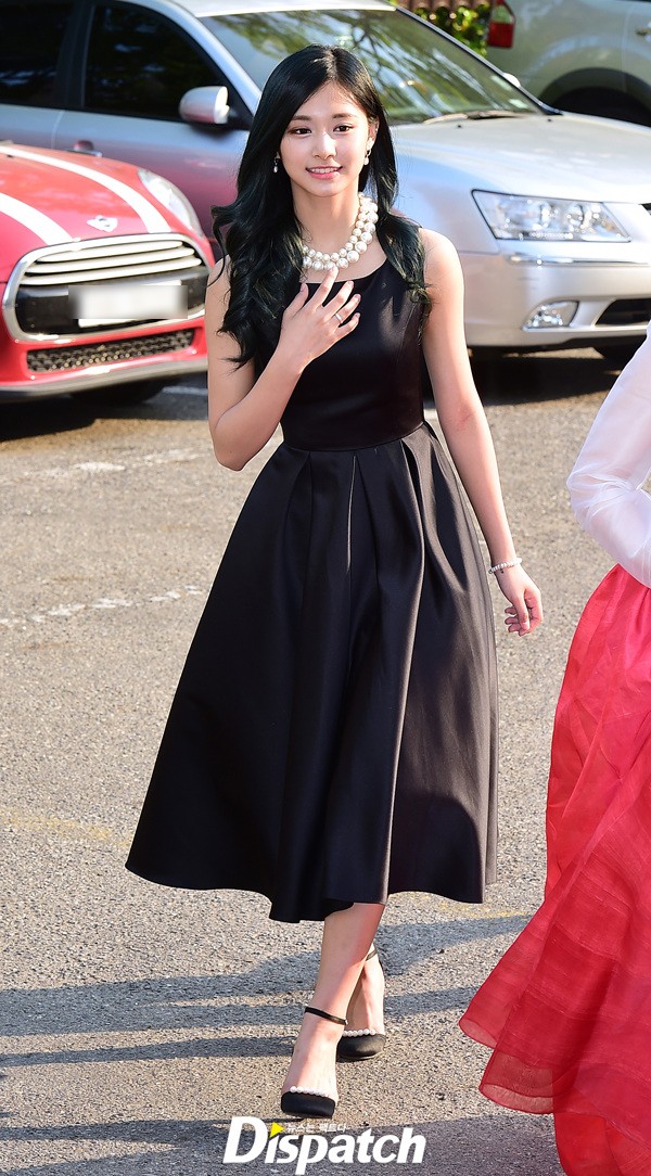 '트와이스' 쯔위는 이날 블랙 드레스를 입고 등장했다. 전에 없던 고혹적인 매력이 눈길을 끌었다.
