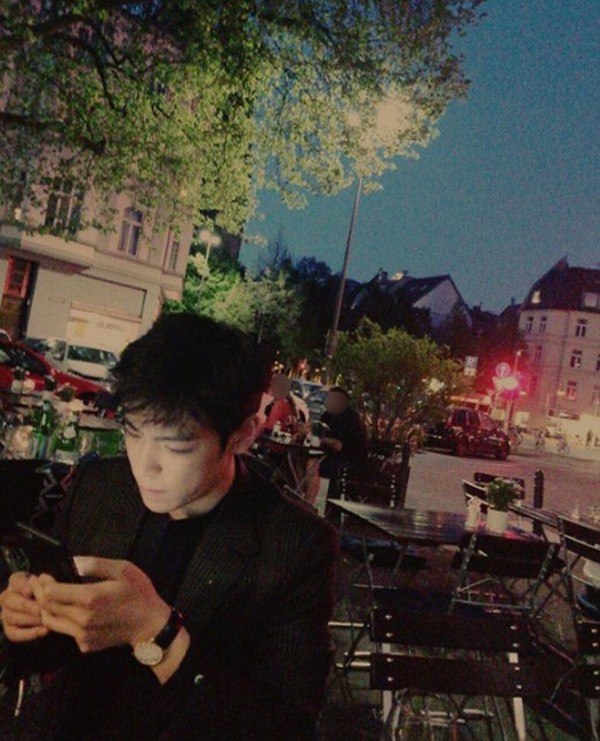 탑은 13일 개인 인스타그램에서 사진을 올렸습니다. 외국의 한 야외 레스토랑에서 찍은 사진입니다.