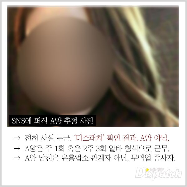 한편 A양의 신상에 대한 각종 루머가 온라인에 떠돌고 있다. 우선 ⑩ A양의 얼굴로 알려진 사진은 가짜다. '디스패치'가 확인한 A양과 전혀 다른 얼굴이다.
