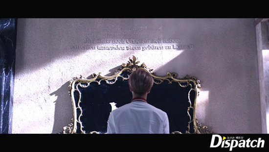 ▶ 장면 10. 뮤비 5분 50초. 제이홉이 배경에 두고 춤을 추던 '피에타상'이 깨진다. 6분, 뮤직비디오 마지막에서는 거울을 바라보던 진의 얼굴에 금이 가기 시작한다.