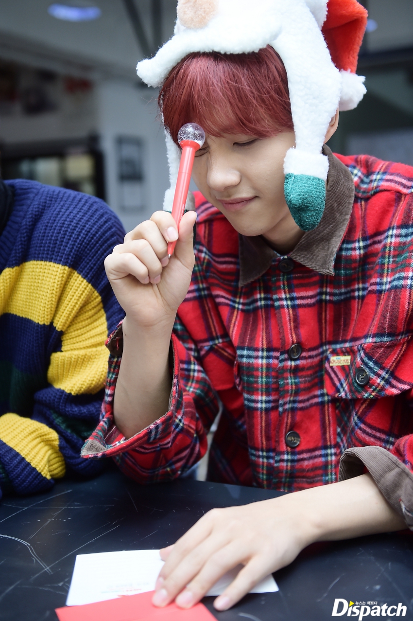 B1A4가 옹기종기 모였습니다. 정성스럽게 크리스마스 카드를 썼는데요. 반듯한 손글씨에, 직접 그림까지 그립니다.