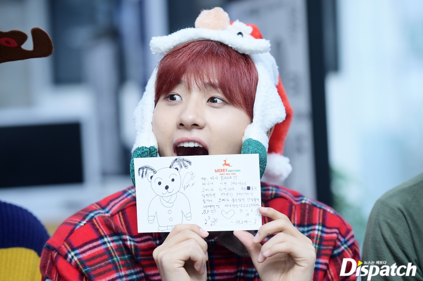 "우리 바나들~. 메리 크리스마스 보낼거죠? 저는 스키장에 가고 싶어요. 무조건 화이트 크리스마스겠죠? 생각만해도 좋네요." (공찬)