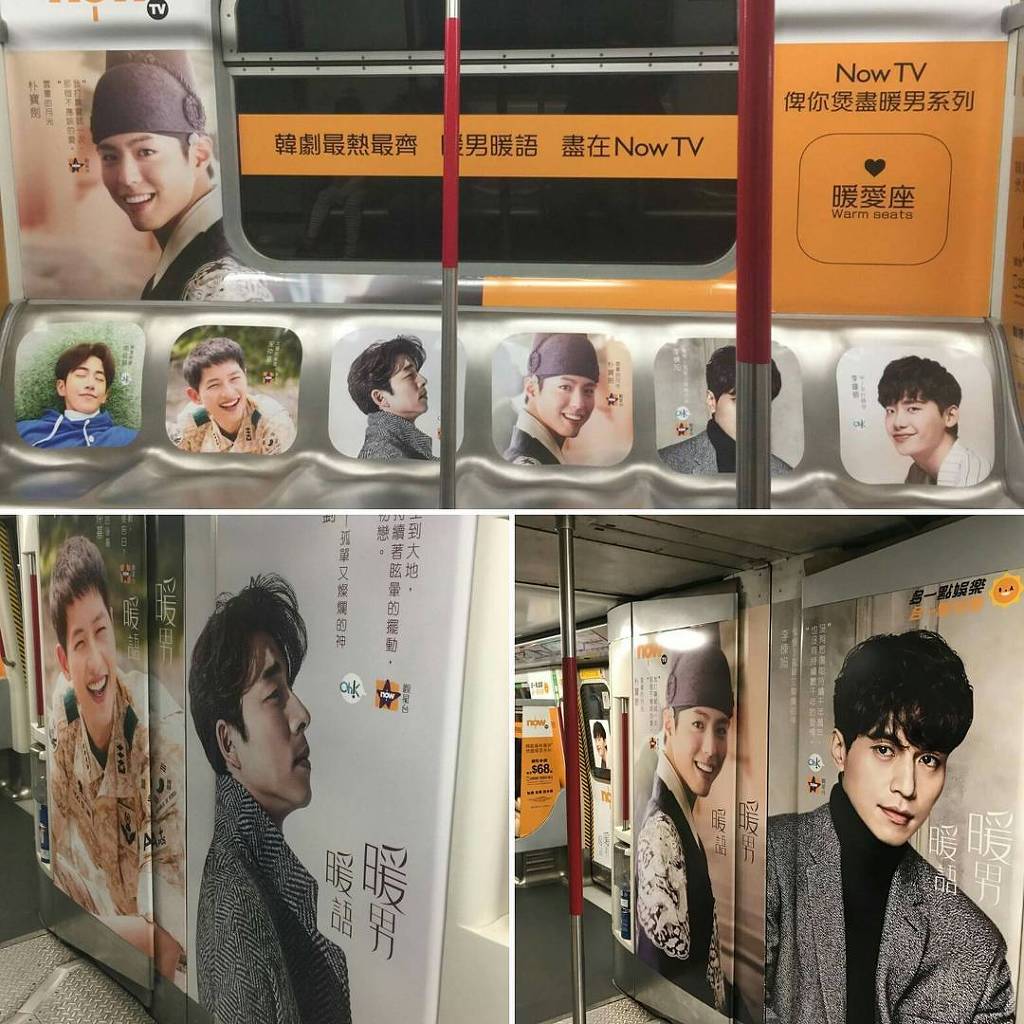 신기한 풍경입니다. 박보검, 이동욱, 송중기, 공유, 남주혁, 이종석 등 한국 드라마의 주인공들이 지하철 전체를 장식하고 있었습니다.
