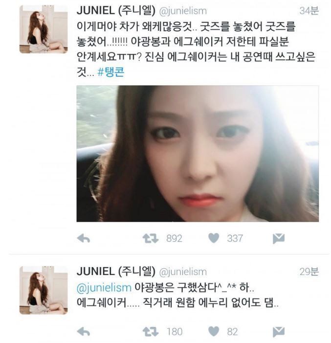 ▶ 주니엘 : 주니엘은 태연의 오랜 팬입니다. 지난 해 7월에는 태연의 단독 콘서트를 직접 관람했고요. 태연의 팬들을 만나 굿즈 직거래까지 했습니다.