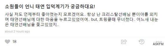 태연이 부담스러워할까봐 직접 축하 메시지는 보내지 못했다는 후문입니다.