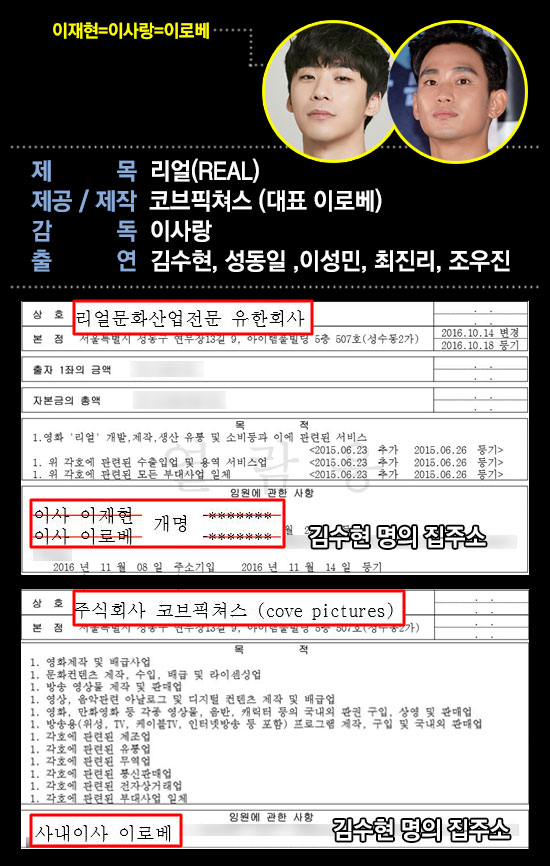 ◆ 리얼의 출발점 ② : 이재현, 아니 이로베 대표는 누구일까. 문전사와 제작사를 동시에 운영한다. 게다가 주소지는 김수현이 살고 있는 그 집이다.