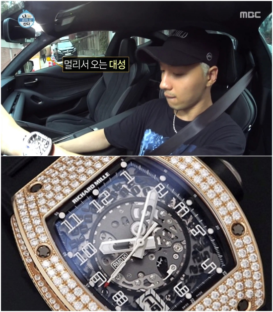 운전하는 태양, 럭셔리하다고요? 아마 시계 때문이겠죠? 태양의 손목에서 번쩍이는 시계는 스위스 명품브랜드 '리차드 밀' 제품입니다. 약 2억 원입니다. 자동차보다 비싼 시계를 손목에 차고 다니네요.