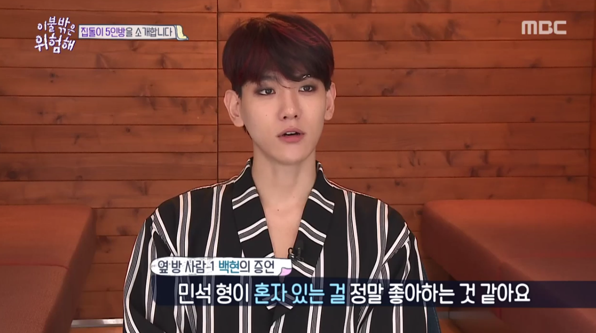 엑소 멤버들도 시우민의 집돌이 습성에 대해 증언했습니다. 백현은 "민석 형이 혼자 있는 것을 좋아한다"고 말했습니다.