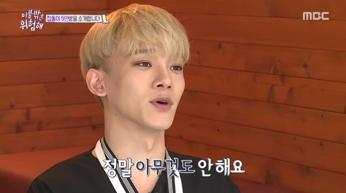 첸 역시 시우민에 대해 "혼술하고, 영화 보고, 이게 전부다. 정말 아무것도 안 한다"고 거들었습니다.