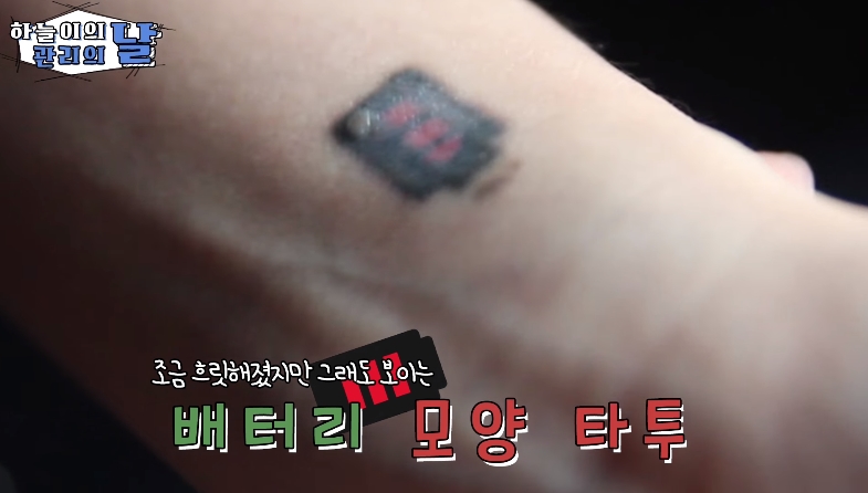 그는 손목에 작은 문신이 있습니다. "1회당 10만원 정도 드는 타투 제거 시술을 받고 있다"고 털어놨죠.