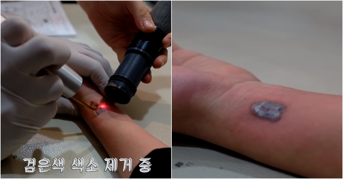 먼저 마취 크림을 발랐습니다. 얼음으로 타투가 있는 부위를 문질렀는데요. 이후 시술을 통해 문신을 지웠습니다.
