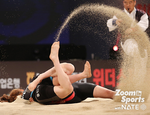 콜핑 임수정이 구례군청 이다현을 '2-1'로 물리치고 여자천하장사에 등극했다. 올시즌 국화급(70kg 이하) 전관왕을 차지한 임수정은 마지막 천하장사도 거머쥐며 명실상부한 여자씨름 최강자임을 입증했다.