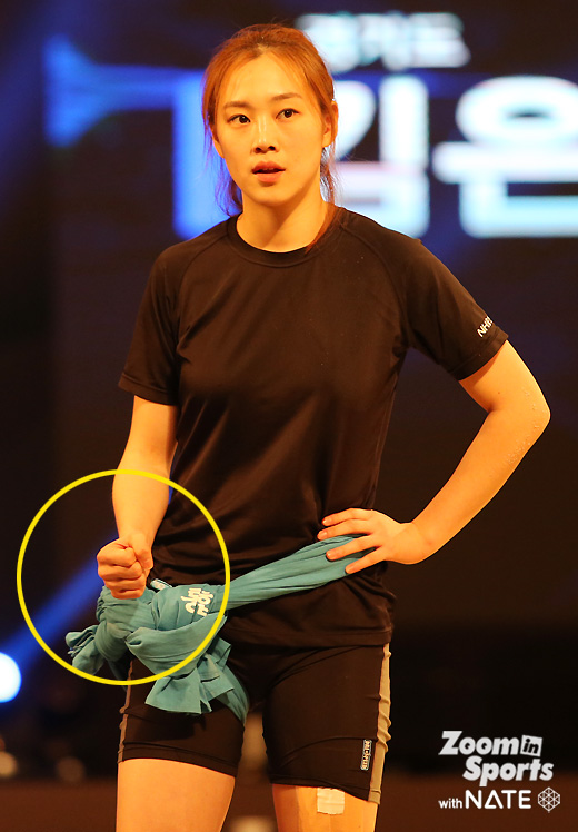 그렇다. 김은별이 오른 주먹을 꼭 쥔 이유는 홍샅바 즉, 서울씨름사랑회 '무서운 고1' 이정수의 어깨가 모래판에 먼저 닿은 이유였다. 매화급 결승전 첫째판은 김은별의 승리였다. '1-0'으로 앞서가는 김은별이었다.