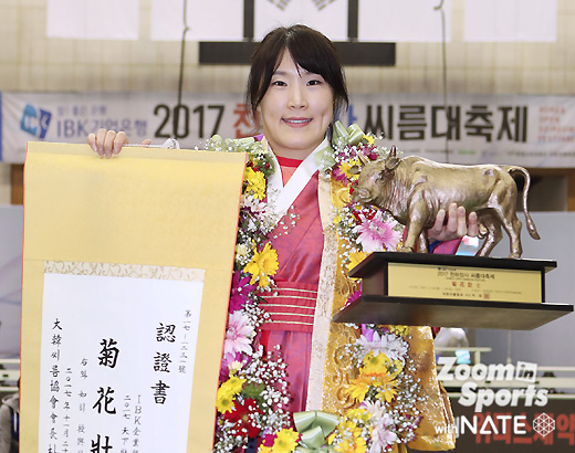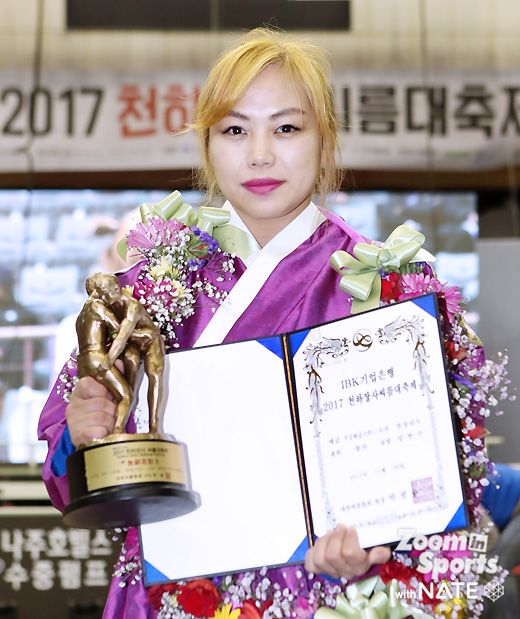 우승은 임수정. 더이상 어떤 설명이 필요할까. '여자 이만기' 임수정은 대한민국 여자씨름을 대변하는 최강자다. 체급별 우승은 물론, 여자천하장사 예선전에서 '여자 이봉걸' 거제시청 정지원을 물리치는 파란을 일으켰다.