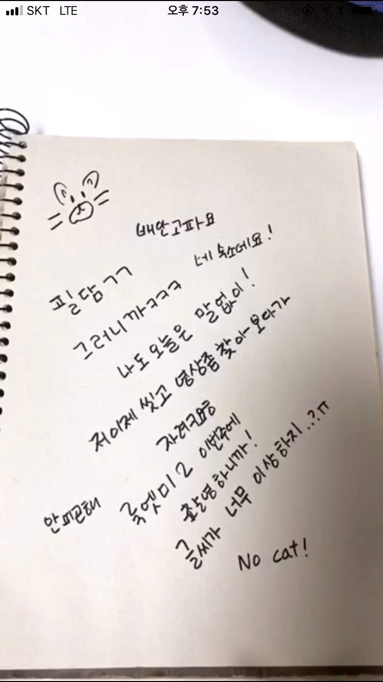 그리고 찬미는 "오늘은 말없이 필담으로 라이브를 진행하겠다"고 써내려갔습니다. 그리고 팬들의 질문에 전부 손글씨로 대답하는 모습을 보여줬죠.
