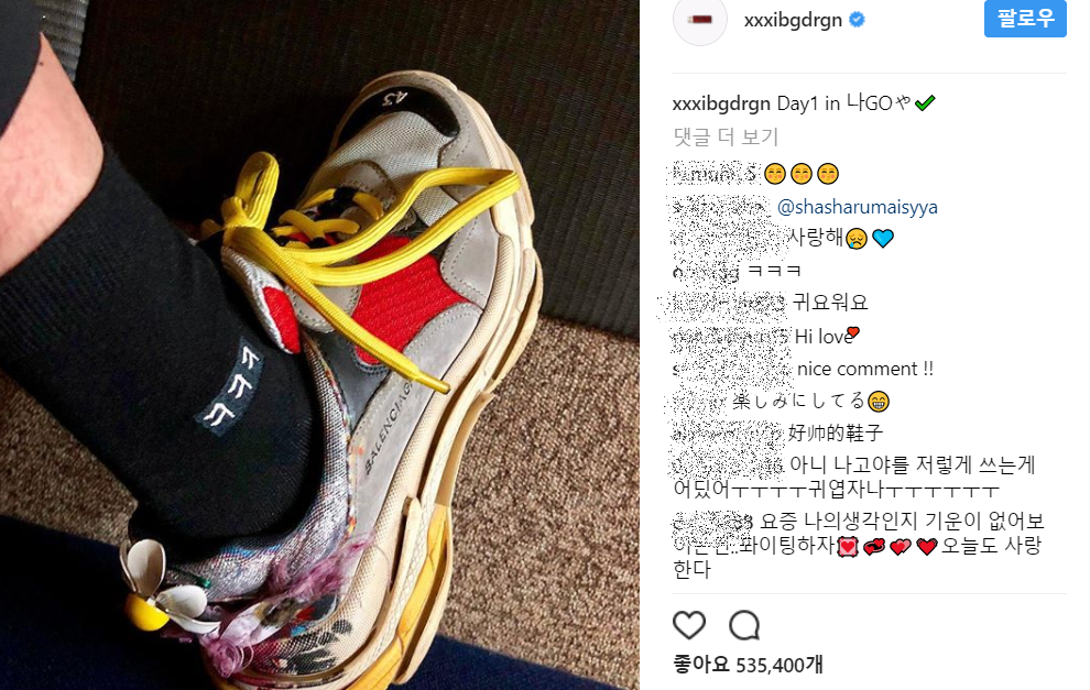 지드래곤이 신은 양말의 가격이 화제가 됐습니다. 자신의 인스타그램이 2일 사진을 올렸는데요.