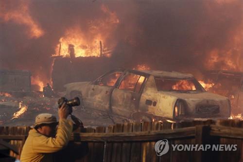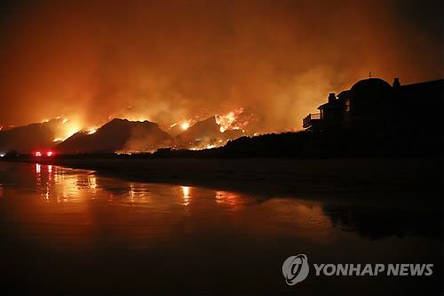 (로스앤젤레스=연합뉴스) 옥철 특파원 = 미국 캘리포니아 주에서 일어난 초대형 산불이 발화 사흘째인 6일(현지시간) 걷잡을 수 없이 확산하고 있다.