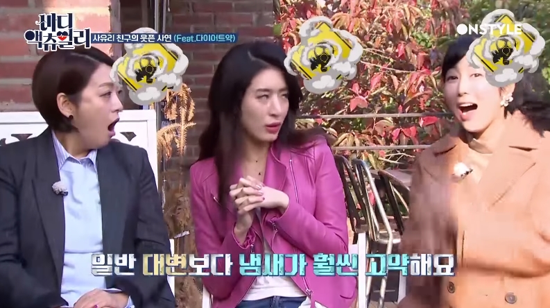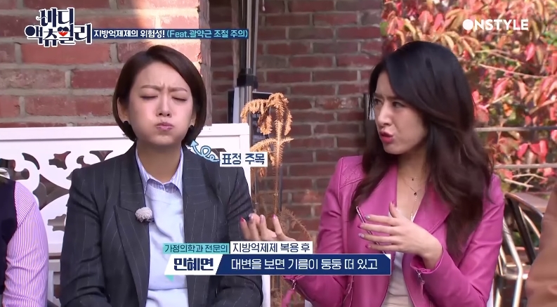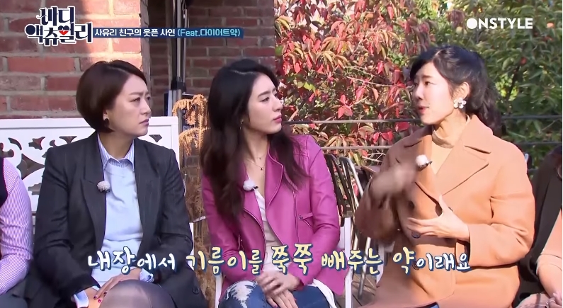 사유리는 "제 친구 이야기다. 약이 내장에서 기름을 쭉쭉 빼준다더라. 기름진 음식 먹는 날 (약을) 먹으라더라"라고 했는데요.