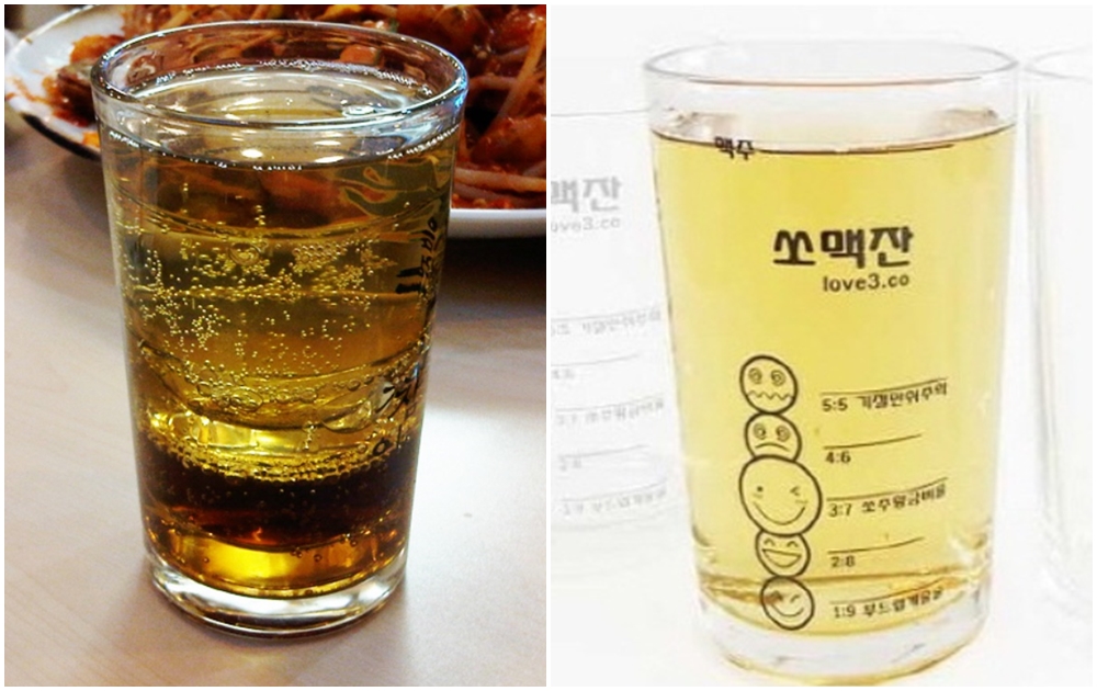 폭탄주, 믹스주 하면 고진감래주가 빠질 수 없겠죠. 한때 소맥잔이 따로 나올 정도로 붐을 일으켰답니다.