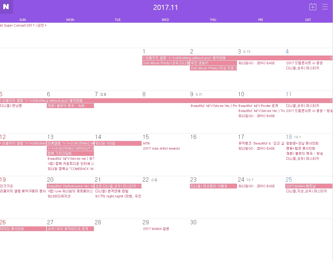 여기에 드림콘서트, 예능 촬영, 음악방송, 팬사인회, 라디오 등까지 추가되면요. 거의 쉴 틈이 없습니다. 30일 간 그들에게 스케줄이 없는 날은 일주일도 되지 않습니다.