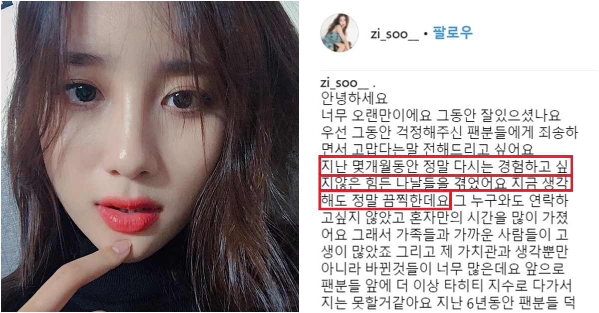 걸그룹 '타히티' 지수가 그룹 탈퇴 소식을 전했습니다. 지난 9일 인스타그램에 장문의 글로 팬들에게 인사를 전했는데요.