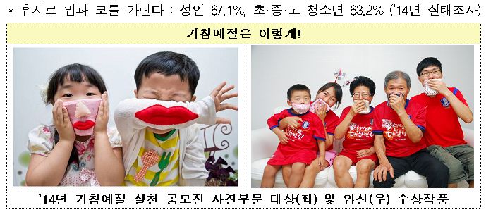 질병관리본부에 따르면, 결핵이나 인플루엔자 등 호흡기 감염병 예방을 위해 해당 포즈를 취하는 것이 중요하다고 합니다.