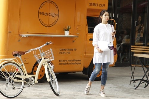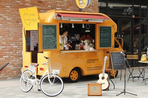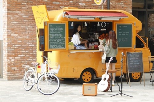 꽃집 앞엔 노란색 커피차가 대기중입니다. 제가 주로 연기할 장소랍니다.