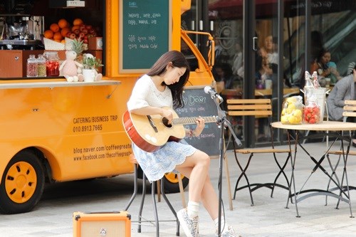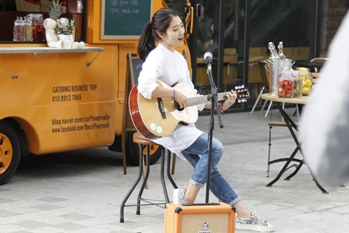 눈치 채셨나요? 제 역할은 가수 지망생 겸 커피차 아르바이트생이에요. 매일매일 오디션에 떨어지지만, 희망을 잃지 않고 도전하는 소녀랍니다.