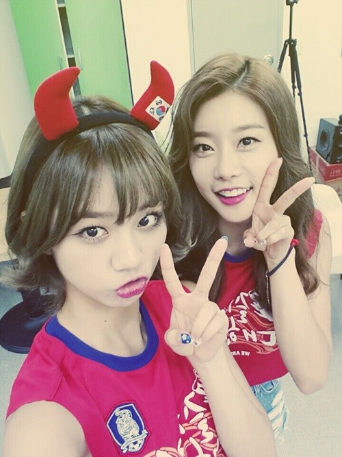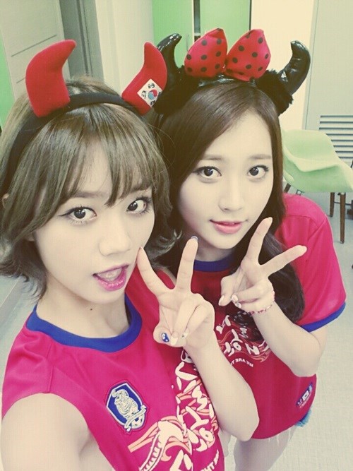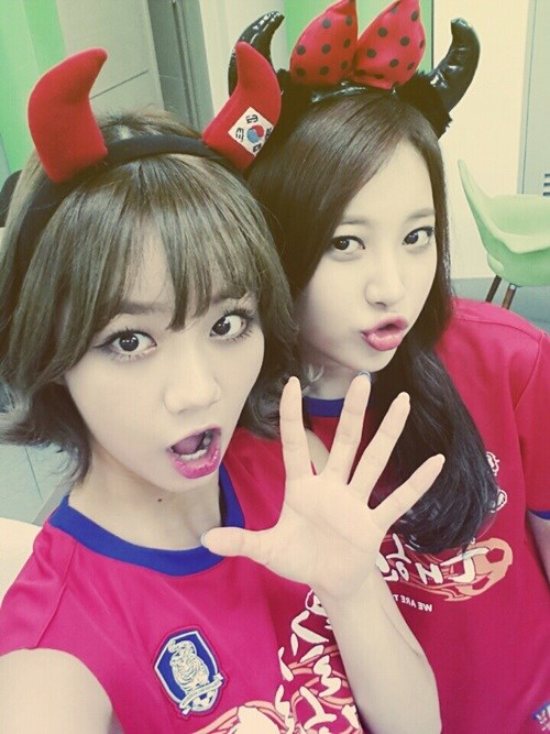 "자랑스러운 태극전사 여러분! 밥 많~이드시고 열심히 뛰세요. 알았죠? 저희가 여기서 완전 열심히 응원하고 있을테니까요. 화이팅!" (by. 민아)