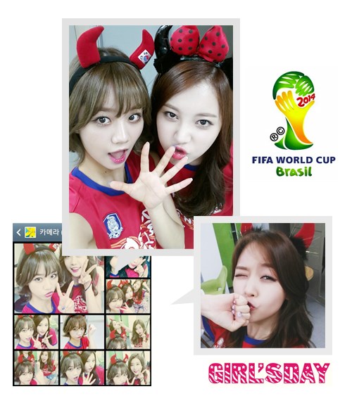 "세계인의 축제, 월드컵! 저희뿐만아니라 온국민들이 기대에 차있으실텐데요. '걸스데이'는 대한민국 국가대표 모두를 응원합니다. 4년동안 고생 많으셨어요. 저희들이 열심히 응원할테니, 결과에 연연하지 마시고 열심히 뛰어주세요. 멋진 감독님 그리고 국가대표 여러분, 화이팅" (by. 걸스데이)