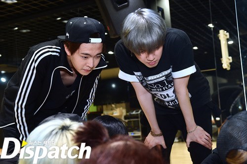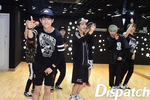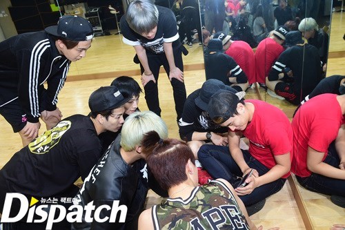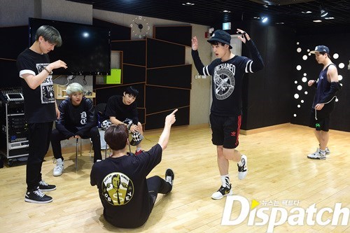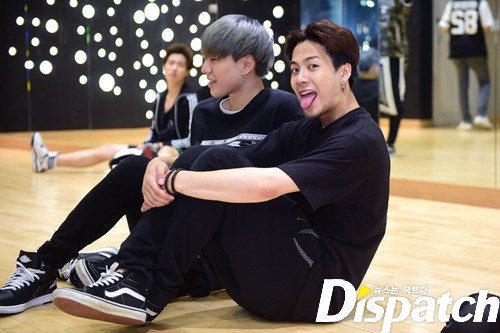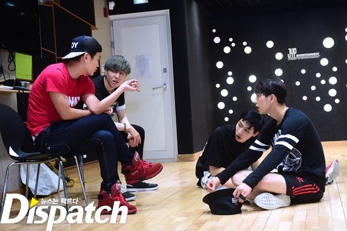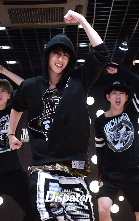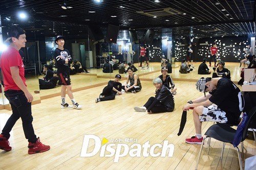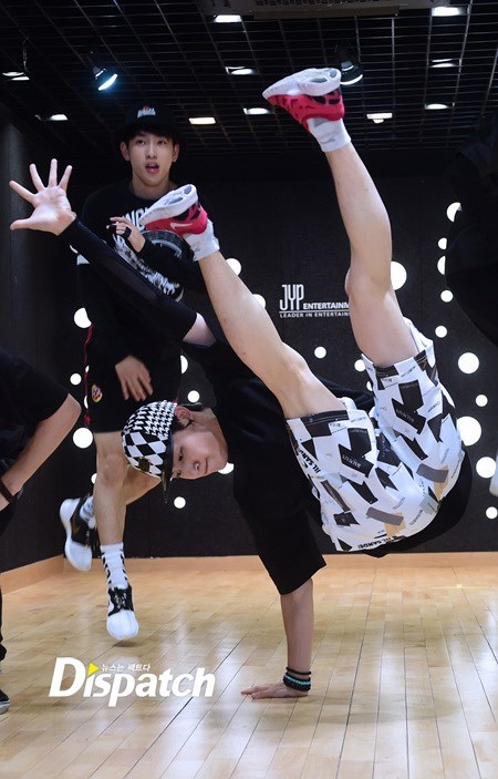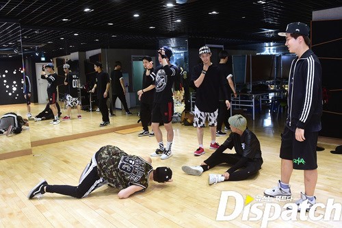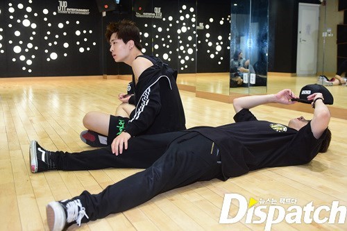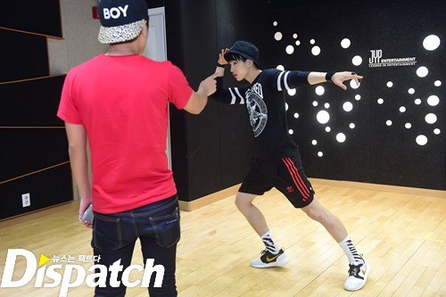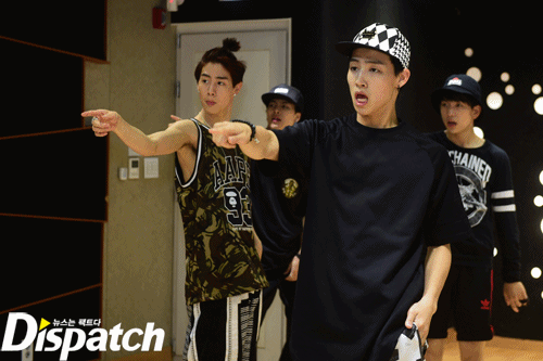안무 연습. 그 강도가 어마무시 했나봅니다. 뱀뱀을 보니 짐작이 갑니다. 저기 바지 무릎 보이시죠? 안무에 올인한 나머지, 바지에 구멍이 딱!