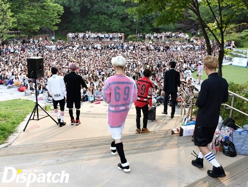 이날 비스트가 팬들과 만난 곳은 서울 가양동 구암 근린공원. SBS-TV '인기가요' 녹화를 마치고 곧장 달려 왔습니다. 이곳에는 팬 1,200명이 자리를 잡고 있었는데요. 평범함을 거부한 이색 팬미팅이었습니다.