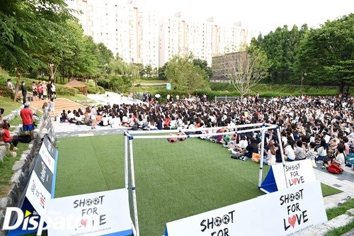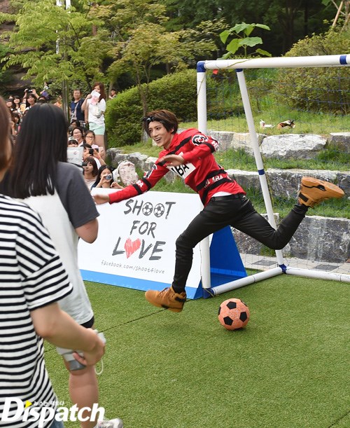 이날 팬미팅의 하이라이트는 'PK 차기' 순서였는데요. 비스트 멤버 1명은 골키퍼로, 팬 1명은 키커가 돼 대결을 펼치는 방식이었습니다. 골 하나당 5,000원의 기부금이 소아함 아동에게 전달되는 이벤트였죠.